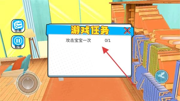 2、进入关卡后,能看到游戏任务提示,攻击宝宝一次,即为玩家本次通关的要求。