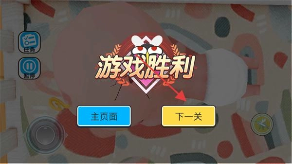 3、卡通画面风格:选用萌趣的卡通风格画面,室内场景、人物与蚊子形象均设计得颇为精致,打造出轻松欢快的视觉氛围,使玩家能够沉浸其中。