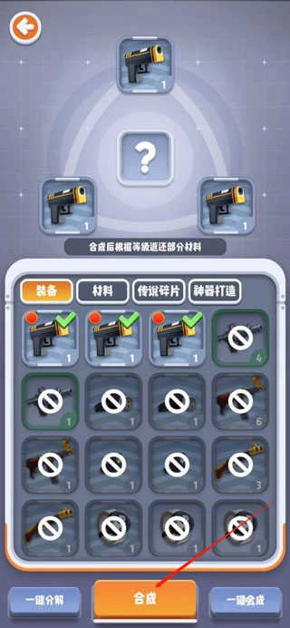3、选择想要合成的武器,并且点击3件一样的武器。