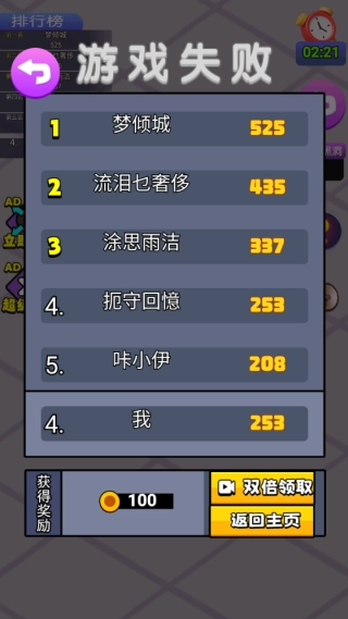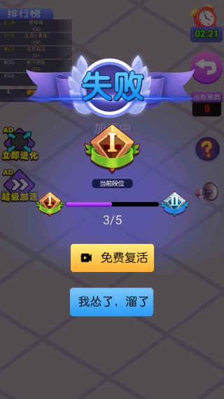 4.如果你场景中被其他的角色淘汰,那么本次的竞技挑战就会进入结算界面。