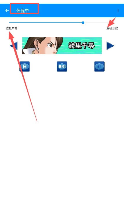 3、完成以上操作以后,返回异议界面,就变成了休庭状态,同时文本内容也替换成了虚张声势和藐视法庭。