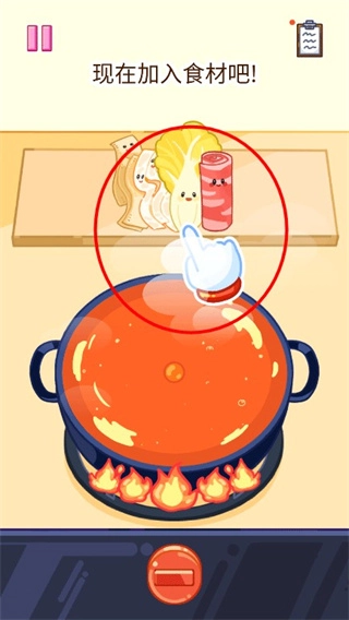 7、按顺序把买的食材放进锅里,完成后点击继续。