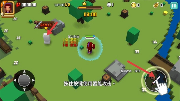 3、按着右侧的攻击键开可以对敌人进行攻击;