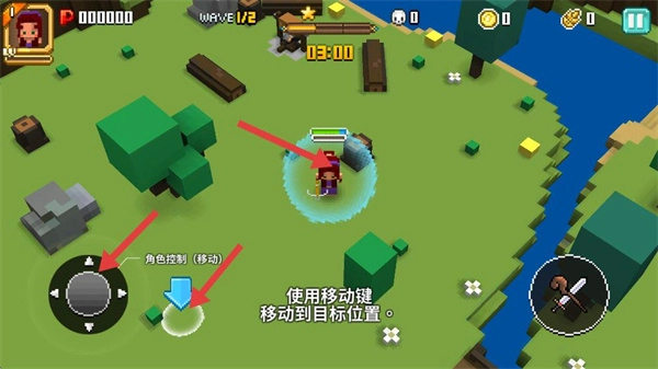 2、通过左下角的方向盘来控制角色移动;
