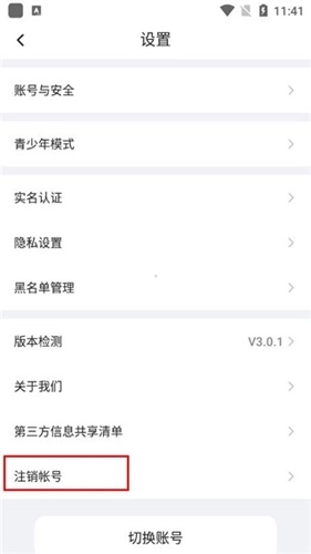 3、点击注销账号。
