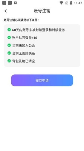 4、账号注销需要满足以下的条件,才能提交申请。