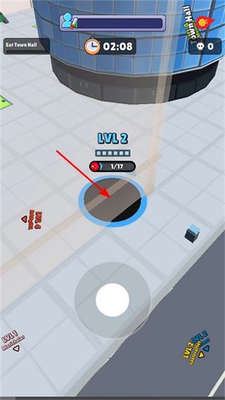 4、升级黑洞,通过持续吞噬目标,提升黑洞等级,以便吞噬物体,完成关卡目标。