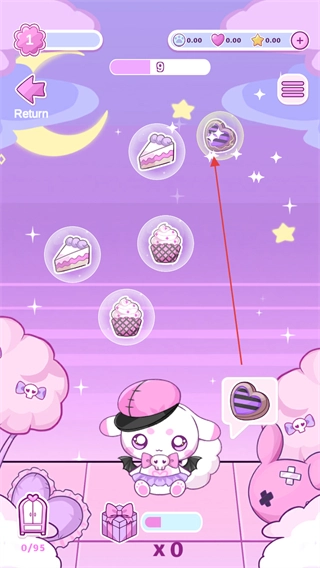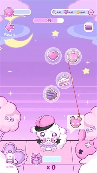 2、游戏开始后,点击空中漂浮的心形、蛋糕等图标,收集它们来填充上方进度条。
