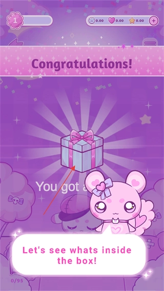 4、完成收集目标后,出现Congratulations!提示,点击礼盒查看获得的物品。