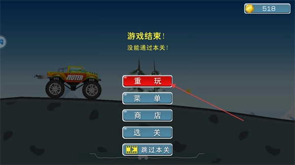 1、进入第1关,点击屏幕右侧的油门按钮控制大脚车前进。