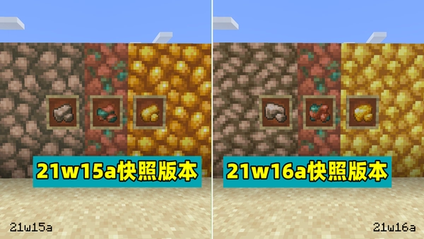 在之前快照版本更新的内容中,很多玩家吐槽“生矿”方块像豆子、花生、牛肉!这次的快照更新中,它们终于迎来了更新。