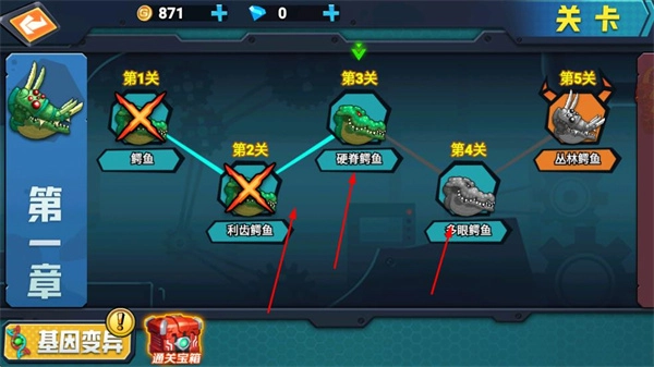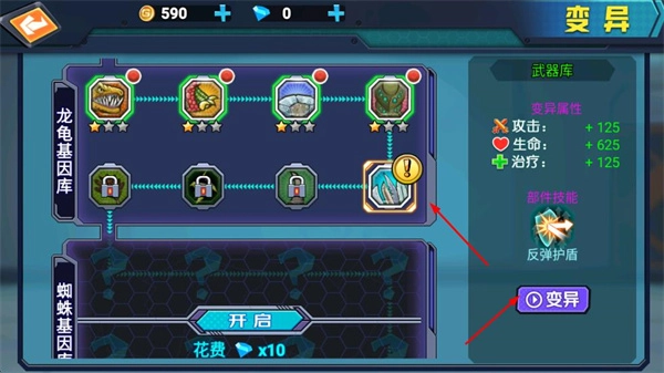 1、可利用基因库,花费钻石对生物进行变异,提升生物的变异属性,解锁部件技能,增强生物的战斗能力。