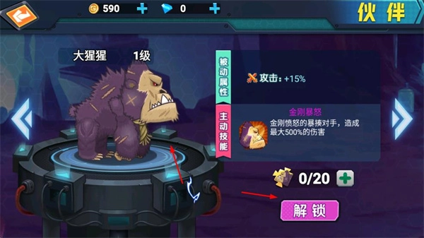 2、可解锁不同的伙伴,伙伴具有被动属性和主动技能,收集足够的道具可解锁伙伴,让其协助战斗。