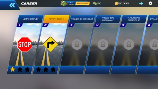 2、挑选驾驶关卡进行体验,每个关卡都能帮助你掌握驾驶及道路安全方面的必备知识。