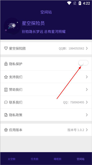 5、空间站主要是软件中心页面,可以开启隐私保护。