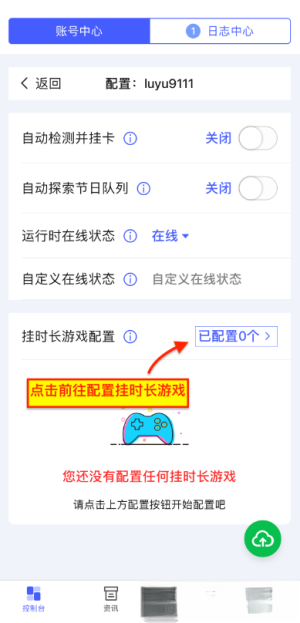 3. 要是只想累计时长,其他选项都不用改动,直接点击挂时长的游戏配置按钮就行。
