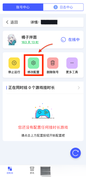 2. 点击账号查看详情,然后点击“修改配置”进入配置页面。