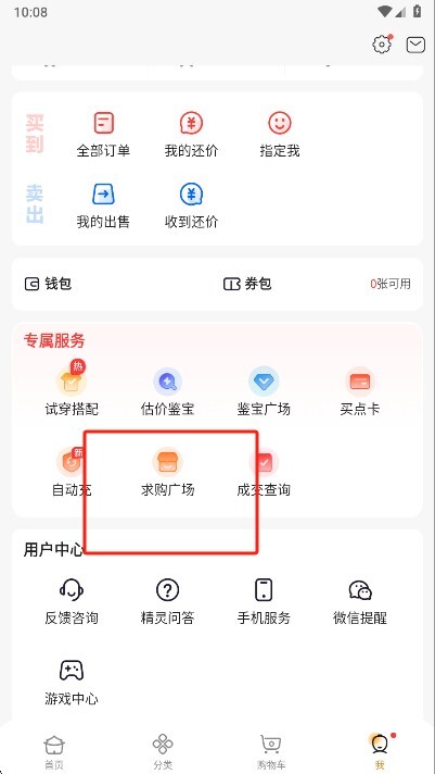 1、来到我的页面,点击求购广场