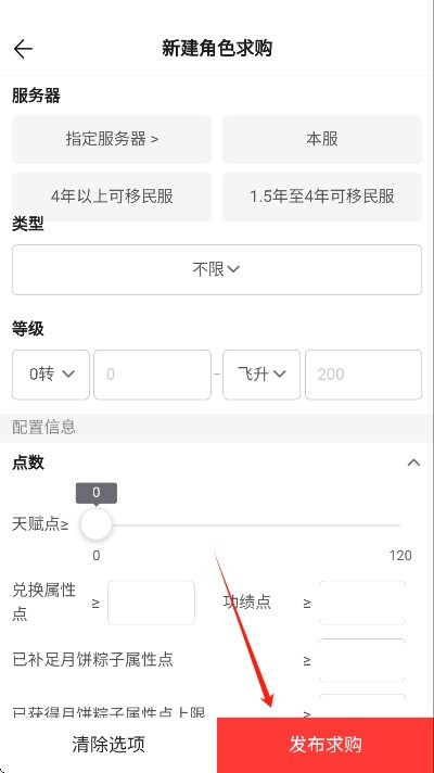 4、以角色为例,填写相关的信息就可以发布求购了