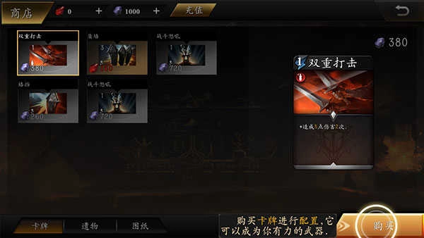4、购买卡牌进行配置,它可以成为你有力的武器。