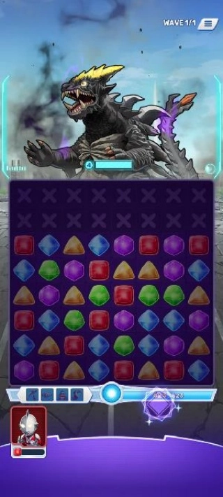 3、借助三消战斗玩法,积累能量以释放奥特技能,体验策略与爽感兼具的战斗乐趣。
