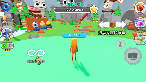 2、拖动虚杆控制角色移动,拖动右侧的箭头可以旋转屏幕。