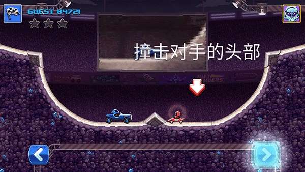 2. 进入关卡后,操控你的赛车与其他对手展开较量,只要把对方撞倒,就能赢得胜利。