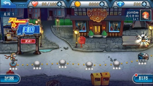 2、核心玩法循环是在僵尸潮里存活下来,消灭所有敌人即可通关,并领取资源奖励。