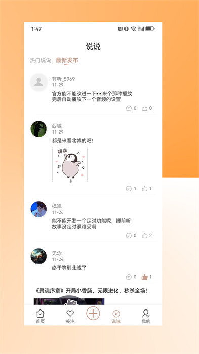 4、分享推荐:支持把自己喜爱的故事分享给朋友或家人,让他们也能一起体验听书的快乐。