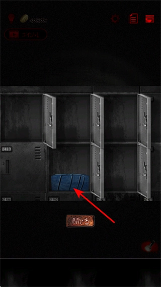 1、探索储物柜区域,在储物柜场景中,查看打开的储物柜,获取其中的物品如蓝色物件,收集解谜线索。