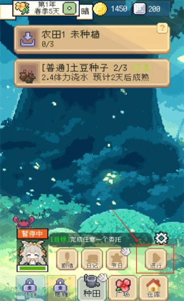 5、点击时间按钮可控制时间的流动与暂停,每天开始时系统会自动进行存档。