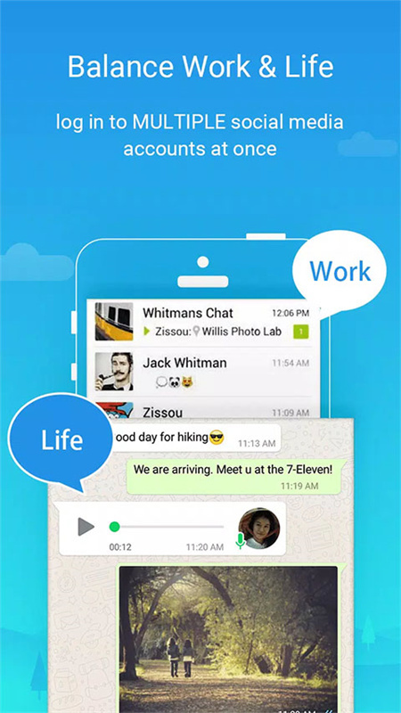 同时运行两个帐户,并通过一次快速切换,以有效管理不同的帐户。
