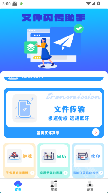 文件闪传助手是一款兼具文件传输与文档格式转换功能的手机应用,可实现pdf转word、pdf转图片、pdf转文字、word转pdf等格式转换操作;文件传输方面支持本地文件的局域网共享,同时还配备日历等实用小工具。仅需简单几步,就能轻松将手机数据互传到新设备,操作过程十分便捷。