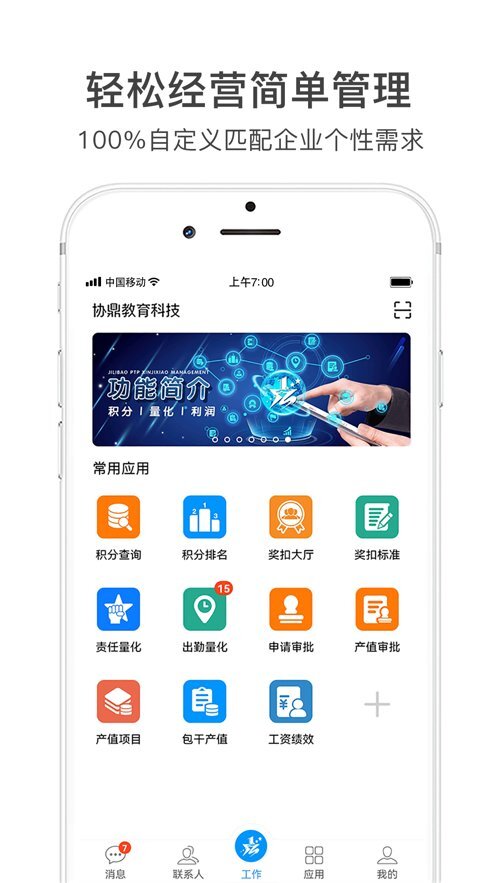 激励宝积分制是一款企业绩效考核与薪酬管理系统,它整合了日常办公所需的各类应用,方便用户在常用应用板块快速定位办公工具。借助该系统,企业能够高效处理各项业务运营与办公事务,助力用户实现随时随地在线办公、处理工作的需求。
