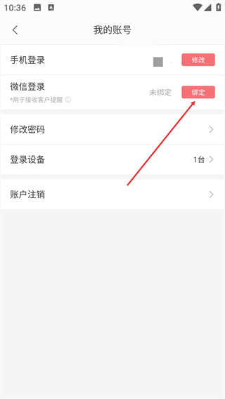 4、找到【微信登录】选项,点击其对应的【绑定】按钮,就能开启微信账号的绑定流程。