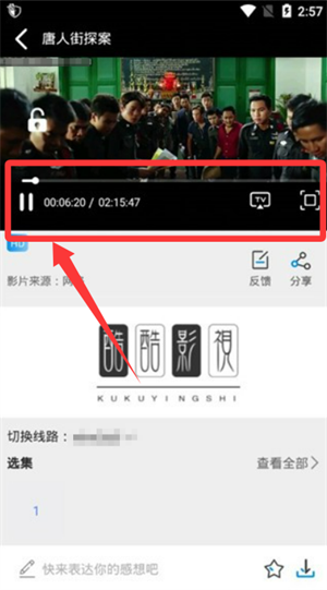 3、跳转至播放页后,可拖动进度条快速定位至想继续观看的片段。