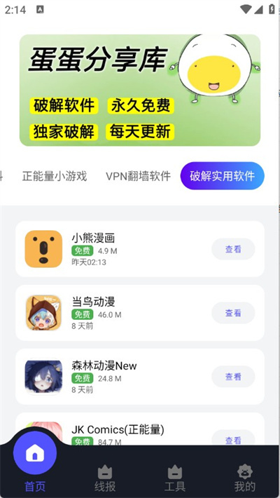 丰富资源:蛋蛋分享库整合了海量的应用资源,涵盖游戏、视频、小说、漫画等多种类型。