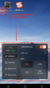 3、进入“云手机控制台”后,可执行打开功能栏(虚拟按键)、切换云手机、调整画质、重启云手机、退出云手机以及上传应用等操作。