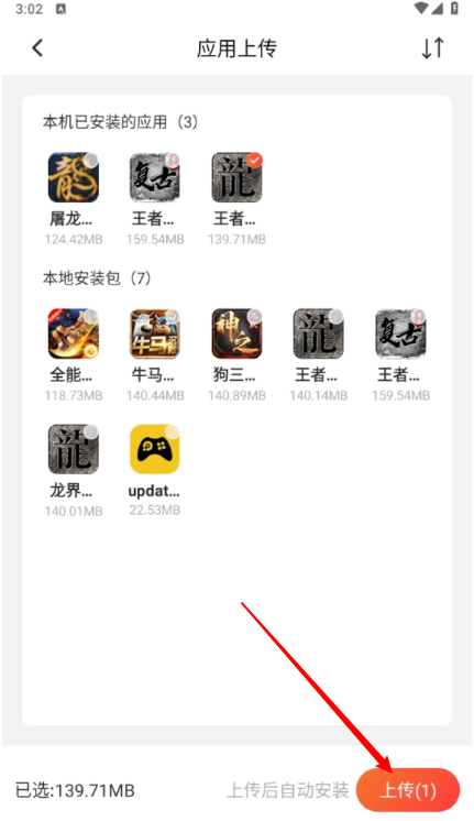 2、同意弹出的获取对应权限后,即可在上传应用界面选择需要的应用上传。