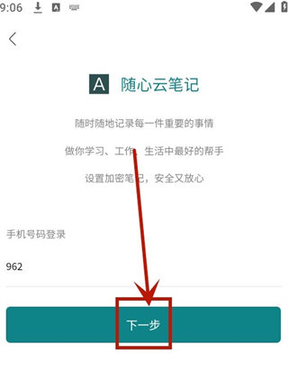 3、填写手机号码,勾选服务协议,点击下一步按钮完成登录操作。