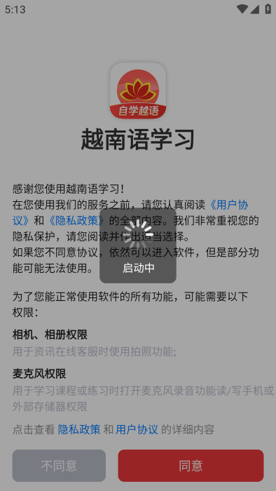 打开你的软件,需要确定用户协议和隐私政策。