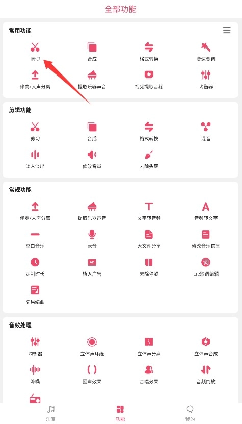 2、在功能选项中选择音乐剪辑工具,系统将自动跳转至专业的音频编辑操作页面。