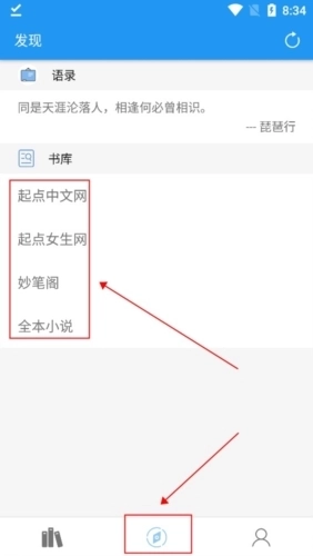1、首先在本站完成好风月读书的操作后,点击下方的第二个板块,在该板块内可以看到书库中包含四个网站,点击进入你喜欢的网站就可以了。