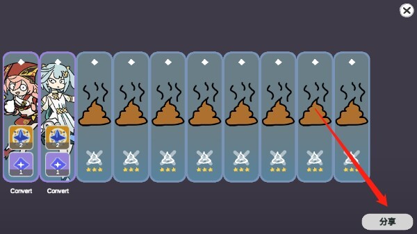2、作为同人二次创作作品,这款游戏的画风充满鬼畜趣味,玩家在抽卡结束后点击右下角按钮,还能生成专属图片分享给好友。