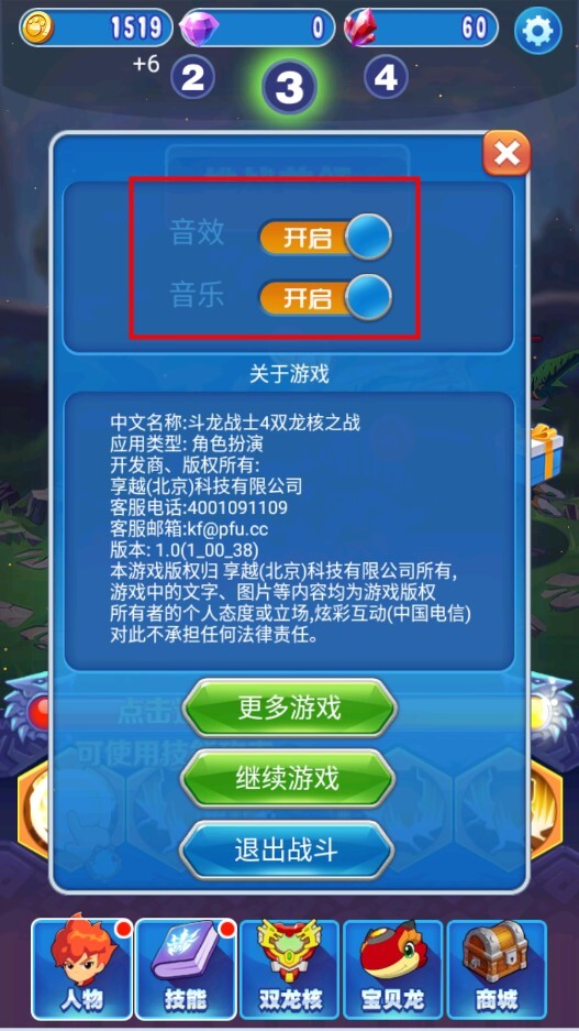 2、在设置页面中,把音效和音乐都关闭。