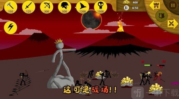 王国大战是一款能让玩家体验到热血战斗的游戏,玩家可操控火柴人完成诸多挑战任务并赢取分数奖励,我们能指挥专属角色去攻克难关,每个关卡里都有各式各样的武器道具供玩家挑选,而且在击败boss后还能获取分数奖励。