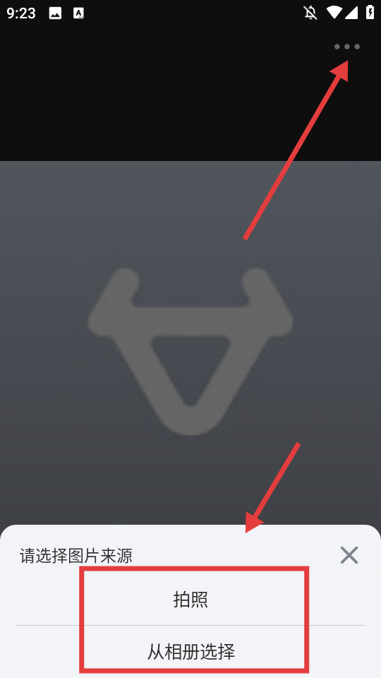 4、点击右上角的图标,在弹出的窗口里选择图片的来源,这样就能完成头像的修改操作了。