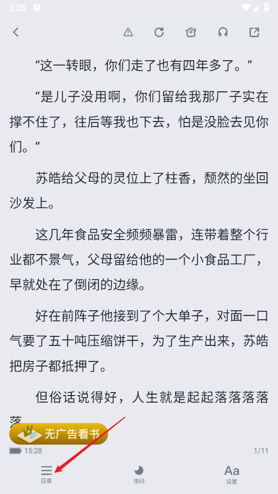 3、进入详情页后,点击右上方的图标进入,选择需要的章节即可。