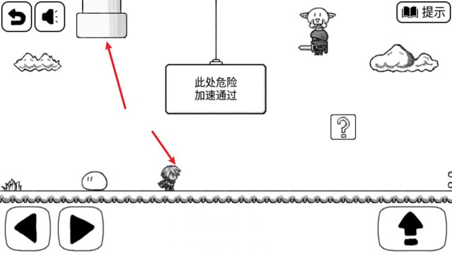 3、提示牌砸下后,地面会塌陷,要迅速的跳上提示牌。