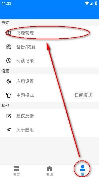 打开星空看书后,点击右下角“我”,并点击“书源管理”;
